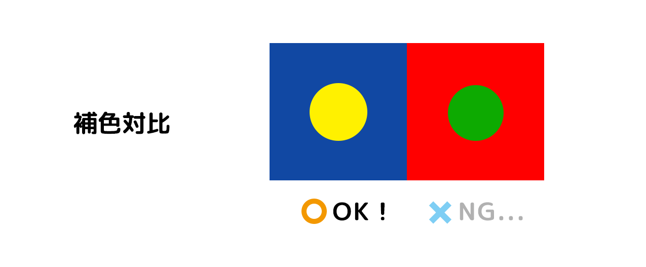 しかし、デザインのセオリーからして守るべき色のルールはあります。それは色の対比を考えるというものです。