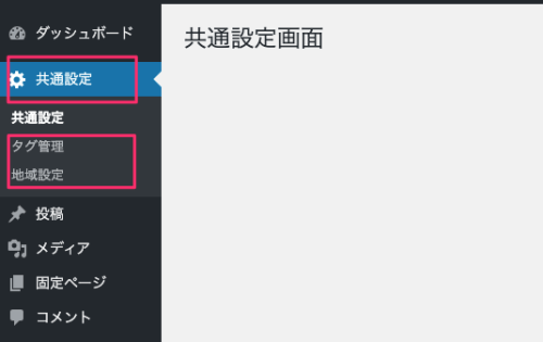 add_menu_page('共通設定画面', '共通設定', 'manage_options', 'custom_menu_page', 'add_custom_menu_page', '